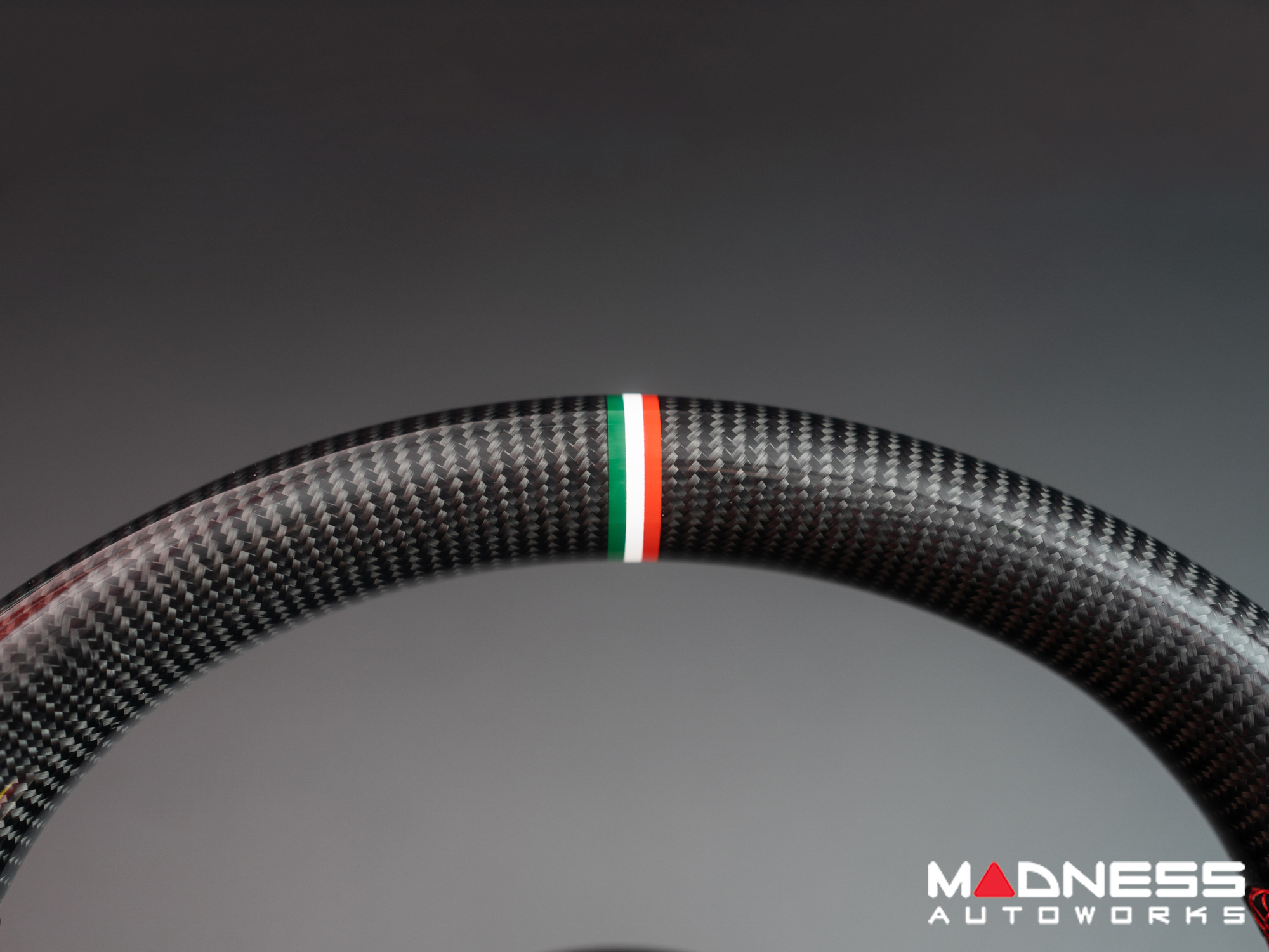 Alfa Romeo Giulia Custom Steering Wheel - Carbon Fiber - Round Top/ Flat Bottom - w/ Italian Stripe - Non QV Models - Alcantara