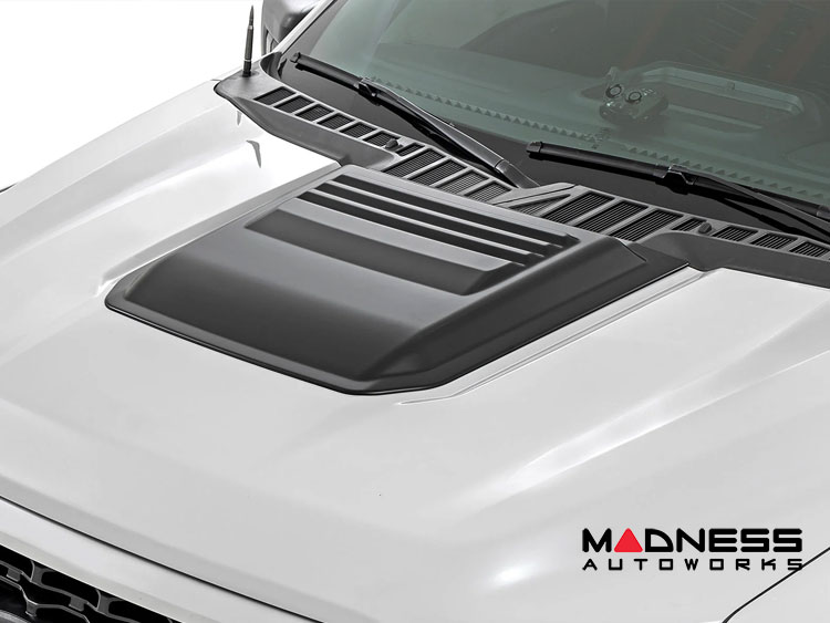 This Rough Country Hood Scoop is the perfect blend of aesthetics and functionality, designed to elevate your truck's appearance while enduring even the most demanding terrains. Meticulously engineered, it fits seamlessly with your vehicle, adding an aggressive edge to your F-150's look that will turn heads wherever you go.