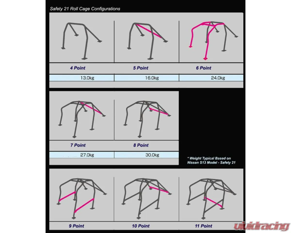 Engineered with precision, the Honda Civic CUS Safety21 Roll Cage is a 2-passenger, 6-point setup that fits seamlessly into the dash-escape layout of your hatchback. The roll cage is finished in an elegant black, complementing the interior aesthetics of your vehicle while providing superior strength and durability. Designed for serious racers and safety-conscious drivers, this roll cage ensures that both the driver and passenger are protected in high-performance environments.