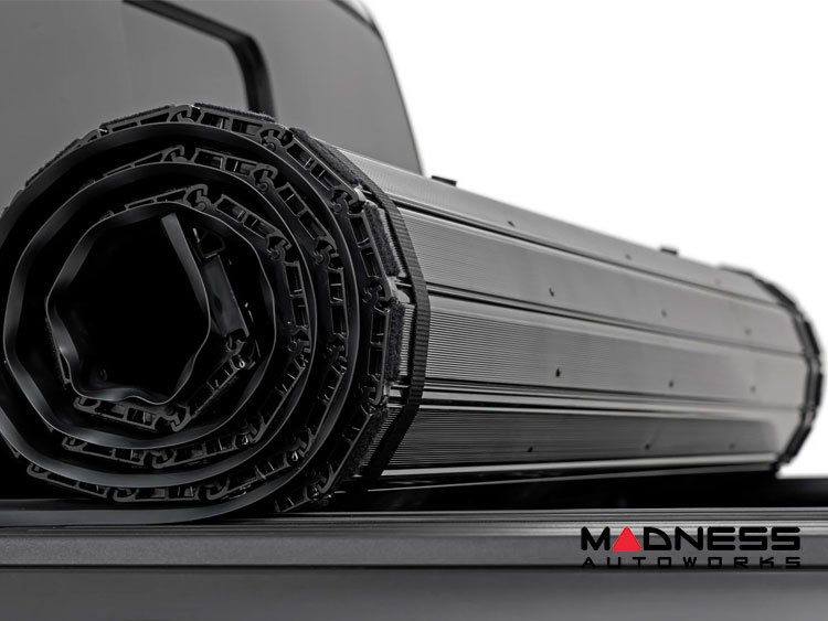 This hard roll-up bed cover is engineered with your needs in mind. It boasts a robust construction with a matte black finish that looks great offering a streamlined and stealthy appearance. Built with high-quality aluminum slats, the cover expertly balances form and function, providing a low-profile design that does not compromise on strength or security. Enjoy easy access to your truck bed with its roll-up design. A simple cable pulls to unlock the cover, and the auto-latching system keeps it securely in place once closed. The black powder-coated aluminum frame offers superior resistance to corrosion and harsh environmental conditions, capable of supporting up to 600lbs of evenly distributed weight.