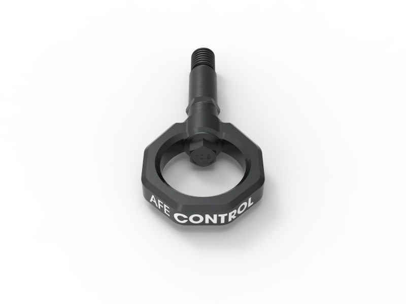 Introducing the Toyota GR Supra Rear Tow Hook by aFe in Gray - designed to enhance both the style and functionality of your GR Supra from the model years 2020 through 2025. With its robust construction and sleek appearance, this rear tow hook serves more than just aesthetic purposes; it is a practical addition that ensures your Supra is prepared for any roadside or trackside eventuality.