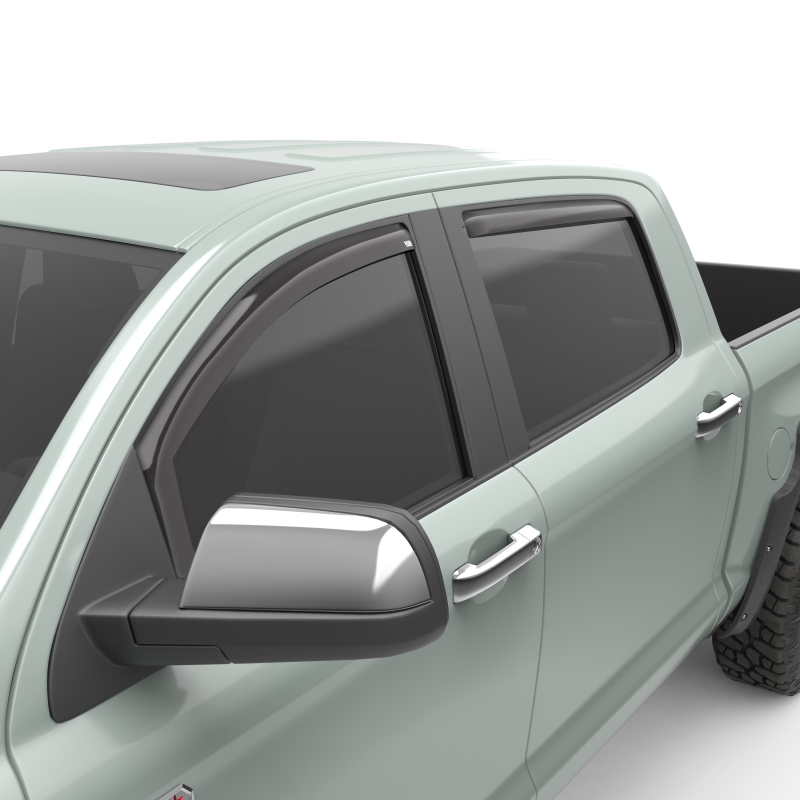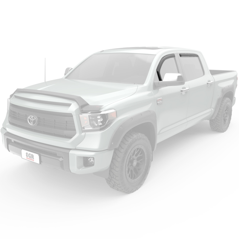 EGR Window Visors are made of a durable, scratch resistant, UV capped acrylic; which will keep your investment from fading, and keep it looking fresh for years to come. With most EGR Window Visors being available in Dark Smoke and Matte Black, customization will never be lacking for the upgrade enthusiast. EGR Window Visors feature an easy, no tools necessary, installation process; whether you choose the classic Tape-on style, or the more modern In-channel style, five minutes or less is all you need! Tape-on Visors utilize a dependable 3M adhesive tape, which will ensure that your EGR Window Visors aren’t going anywhere. All EGR Window Visors come standard with a Limited Lifetime Warranty; meaning that just like our Window Visors, EGR will always be by your side!. EGR DARK SMOKE In-Channel Window Visors are designed to promote fresh air circulation inside the vehicle. These fully integrated, custom molded designs help to reduce windshield fogging in wet weather for safer driving, and can lower interior temperatures in parked vehicles. The UV protected finish is easy to clean.. Limited lifetime warranty. FRONT & REAR SET.. The EGR 575191 is a 4pc set of smoked In-channel window visors for the 2007-2021 Toyota Tundra Crew Maxthat is made from durable UV capped acrylic to promote fresh air circulation helping to reduce interior temps. EGR 575191-4pc Smoke In-channel Window Visors for 07-21 Toyota Tundra Crew Max. EGR 07+ Toyota Tundra Crewmax In-Channel Window Visors - Set of 4 (575191). EGR In Channel Style Dark Smoke Window Visor - proudly made in the USA.. EGR In Channel Style Dark Smoke Window Visor-proudly made in the USA.. EGR in-channel window visors front & rear set dark smoke finish. EGR IN-CHANNEL WINDOW VISORS FRONT/REAR SET DARK SMOKE FINISH. EGR - 575191 - IN-CHANNEL SMOKE 4p. 575191-IC4-S 07-21 Tundra Crew Max. EGR-575191-IN-CHANNEL SMOKE 4p. Fits Into Upper Channel. Side Window Deflector. IN-CHANNEL SMOKE 4p. Window Visors. 575191-IC4-S