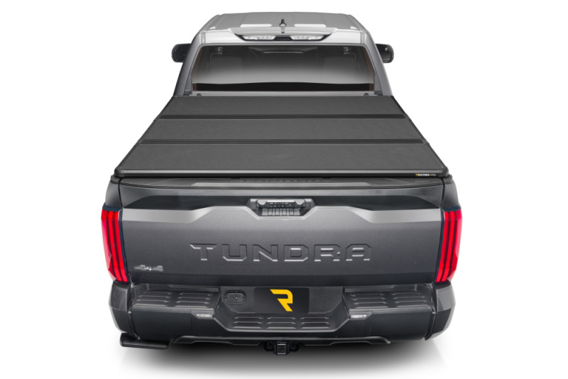 The Extang Solid Fold 2.0 is a hard, tri-fold truck bed cover. The Solid Fold 2.0 tonneau is made with TPO dent-resistant panels and integrated snap on seals to make the most durable and weather resistant hard folding cover on the market. The Solid Fold 2.0 has a textured, matte finish that gives the 2.0 an unmatched OEM look. The Solid Fold 2.0 comes fully assembled out of the box and installs in seconds. Solid Fold 2.0 - The Next Generation of the Extang Solid Fold!. Durable 1-inch thick EnduraShield panels resist dents, scratches, and UV induced fading while also being capable of supporting 600 lbs. of evenly distributed weight. Solid Fold ALX Tonneau Cover - Black Textured Paint - 2014-2021 Toyota Tundra 5' 7" Bed without Deck Rail System without Trail Special Edition Storage Boxes. Solid Fold ALX Tonneau Cover-Black Textured Paint-2014-2021 Toyota Tundra 5ft. 7in. Bed without Deck Rail System without Trail Special Edition Storage Boxes. Secure Rotary Release System uses a simple “twist & lift” function to open and close the cover without the use of tailgate clamps. Secure Rotary Release System Uses A Simple Twist Lift Function To Open And Close The Cover w/o The Use Of Clamps. Hard polymer rubber corners, hinge caps, and snap-on perimeter seals keep out virtually all elements. Hard Polymer Rubber Corners; Hinge Caps And Snap-On Perimeter Seals Keep Out Virtually All Elements. Durable 1-inch Thick Endurashield Panels Resist Dents; Scratches And UV Induced Fading. Attractive Matte Black Textured finish applied over an aircraft-grade aluminum frame. Solid Fold ALX-14-21 Tundra 5ft.7in. w/o Deck Rail Sys w/o Trl Spcl Edtn Strg Bx. Solid Fold ALX - 14-21 Tundra 5'7" w/o Deck Rail Sys w/o Trl Spcl Edtn Strg Bxs. Extang 14-22 Toyota Tundra w/o Rail Sys. (5ft. 7in. Bed) Solid Fold ALX. Also Being Capable Of Supporting 600 lbs Of Evenly Distributed Weight. Jaw Grip clamps for easy installation. Maximum Strength 5-year Warranty. SFA 14-21Tun5ft.7woDRS. SFA 14-21Tun5'7woDRS. SFA 14-21Tun5ft.7woD. Solid Fold ALX. Tonneau Cover