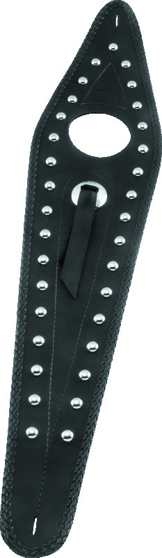 Contoured to hug the tank and felt-backed to protect the paint, Tank Bibs feature braided edges for unique style and utilize stock mounts for easy installation. Available with or without a pouch in your choice of plain or studs and a concho. Decorative studs are chrome-plated brass, not steel, and will never rust. Conchos are custom made from heavy die-cast zinc rather than thin stamping, and are hand-tied with genuine leather straps. Pouch Tank Bibs offer a custom look with sensible convenience and feature a soft, fabric-lined interior. The flap is easy to open and closes tightly via hook and loop.. Mustang 95-07 Honda VT1100 Sabre, Ace, Ace Tourer Tank Bib w/Studs - Black. Tank Bib, Studs