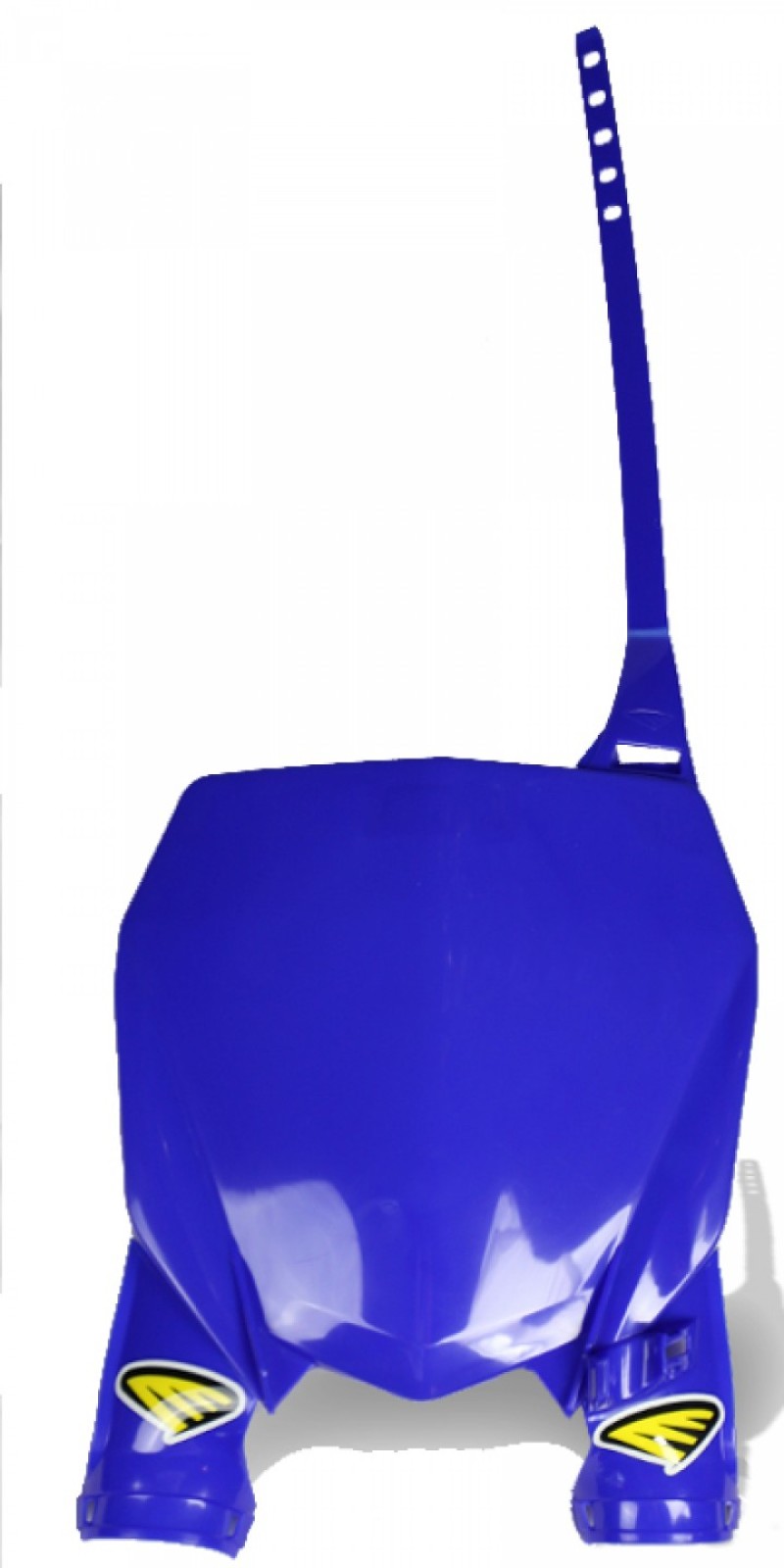 Cycra stadium number plates are better than stock. Redesigned for a better fit, these rugged and ultra-light Cycra Stadium plates are injection-molded with added clearance for stabilizers and cables. Their fork mounting tabs allow for an easy installation to aftermarket/stock triple clamps, plus roost protection for triple clamps.. Cycra 19-23 Yamaha YZ250F Stadium Number Plate - Blue. Integrated cable guide and crossbar strap. Blue