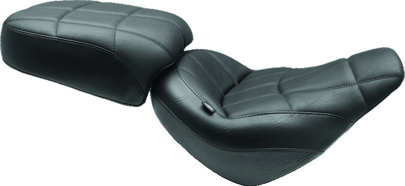 Turn your Rebel into the ultimate mile-eating machine with the Tripper Solo and matching Passenger Seat. The 12" wide driver area offers more room than stock with support across its entire width thanks to Mustang's proprietary controlled-density foam formula. Sits the rider at a similar reach to the controls and ground compared to stock, but the hand-formed bucket-style driver area is contoured to provide a feeling of sitting further "into" the motorcycle for improved comfort and control. The Tripper solo and matching passenger seat are both dressed in a high-quality expanded vinyl cover that offers the appearance of leather and durability to withstand the elements.. Mustang 17-21 Honda Rebel 300, 500 Tripper Passenger Seat - Black. Tripper Passenger Seat, Original