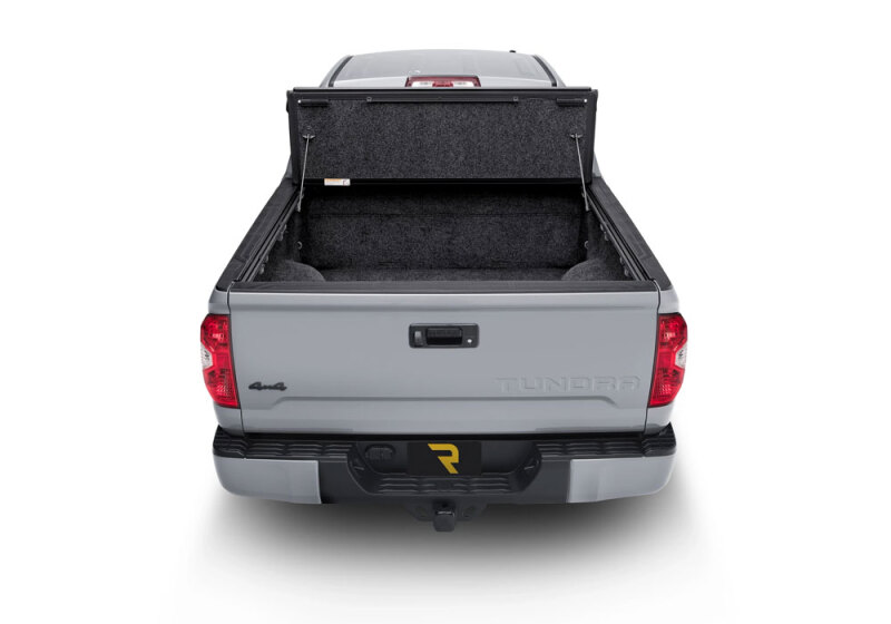 If you're in the market for sleek, stylish bed protection for your pickup, then consider the low-profile, color-matched aesthetic of a Fusion Tonneau Cover from UnderCover! This tonneau cover offers a classic tri-fold design, exceptional theft resistance, and professionally paint-matched top panels that blend seamlessly with the body of your pickup. This tonneau cover features a rugged aluminum panel construction for maximum strength and theft resistance. Unlike theft-prone soft covers, the UnderCover Fusion is cut and slash-resistant, keeping the valuables in your truck's bed safe and secure. However, this cover doesn't only resist theft but also extreme weather conditions! Integrated EPDM rubber hinges and perimeter seals prevent moisture intrusion, protecting your precious cargo against heavy rain, dirt, dust, and other contaminants. Aesthetically, this tonneau cover is tough to beat. Unlike most competitors, which feature a textured black finish that blends into the bed, the UnderCover Fusion features painted top panels that are professionally color-matched to your pickup's factory paint code, ensuring a flawless match that doesn't disappear into the bed but become a part of your pickup's body. UnderCover backs this finish with a limited lifetime warranty. Operating the UnderCover Fusion Tonneau Cover is simple and intuitive. The classic tri-fold design features three panels and three sets of hinges, which allow you to fold the cover onto itself toward the bulkhead for bed access. Where most tri-fold tonneau covers only offer 2/3 bed access, the UnderCover Fusion features integrated support arms that enable you to secure the cover against the rear window/cab for complete access to your pickup's cargo space when loading oversized cargo.. UnderCover Fusion 2022-2023 Toyota Tundra 6ft. 7in. Bed-Paint Code 1J9 Celestial Silver Metallic. UnderCover Fusion 2022-2023 Toyota Tundra 6' 7" Bed - Paint Code 1J9 Celestial Silver Metallic. Universal tailgate operation: tailgate opens and closes with cover open or closed. UnderCover 22-23 Toyota Tundra 78in Fusion Bed Cover - Celestial Silver Metallic. Fusion 22-23 Tundra 6ft.7in.-Celestial Silver Metallic. Fusion 22-23 Tundra 6'7" - Celestial Silver Metallic. Limited Lifetime Finish / 5-Year Structural Warranty. Lightweight and durable aluminum panel construction. Integrated support arms allow for full bed access. Smooth, paint-to-match panels for sleek styling. Weather-resistant interior and exterior seals. Integrated Perimeter And Corner Seals. L-rail for quick and easy install. Soft-touch carpeted under panels. Fashionable Matte Black Panels. Easy On-Off Functionality. FUS 22-23 Tundra 6ft.7. FUS 22-23 Tundra 6ft. FUS 22-23 Tundra 6'7. Fusion Tonneau Cover. Low-profile design. Dual Hinge Seals. Tri-fold design. Tonneau Cover
