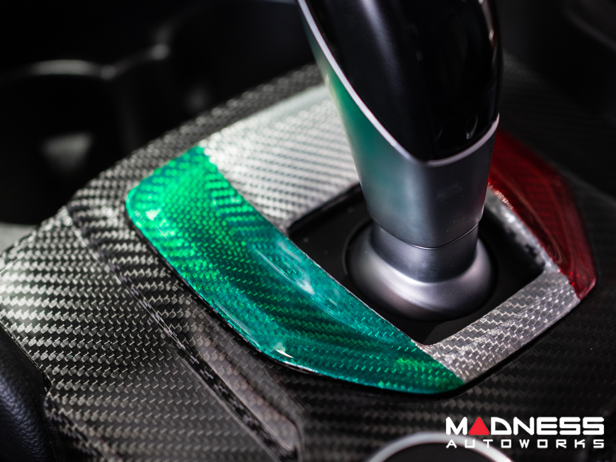 shift gate and instantly gives your Alfa Romeo Stelvio a custom look. This version is made in a Unique Custom Italian Theme.