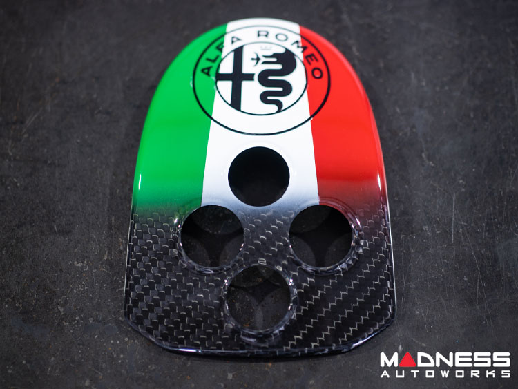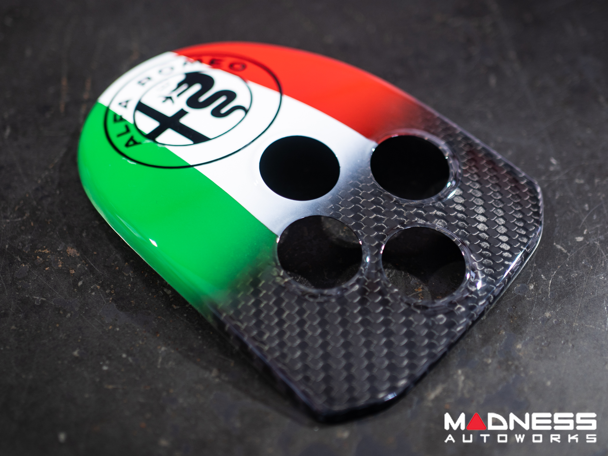 Alfa Romeo 4C Central MTA Control Cover - Carbon Fiber - Italian Theme + Alfa Romeo Badge - V2
