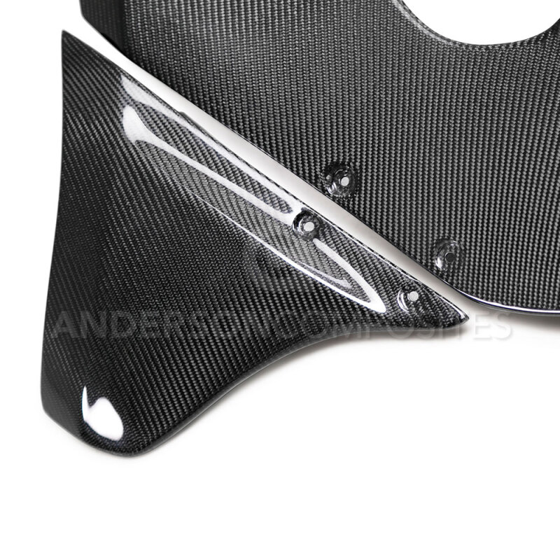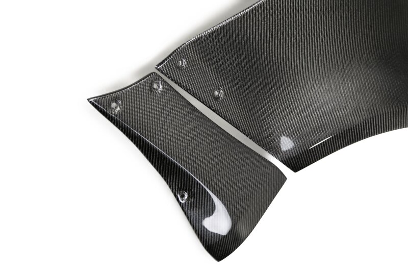These Type-JTP fender flares are expertly designed with 3K, 2X2 Twill Weave Carbon Fiber, ensuring unmatched quality and durability. Utilizing Anderson Composites' proprietary vacuum infusion process, the carbon fiber is embedded with resin as a liquid, resulting in a stunning high-gloss, wet-look finish that is sure to turn heads. Each piece is meticulously hand-crafted, providing superior craftsmanship and outstanding fitment to your Mustang. The widebody design not only enhances the aggressive look but also offers practical benefits, such as improved aerodynamics and room for wider tires, giving your Mustang enhanced performance capabilities.