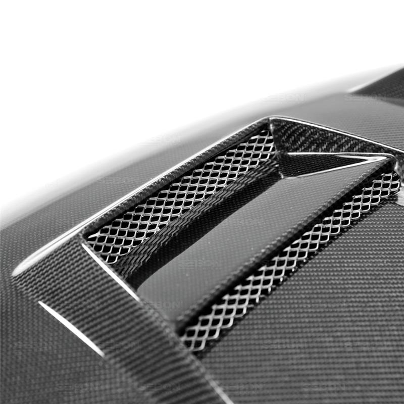 Seibon carbon components are hand-crafted using 3K 2x2 twill weave carbon fiber with a controlled carbon/resin ratio for improved stiffness and strength. This hood is finished with a durable glossy clear coat that resists chipping and flaking and reuses most OEM install hardware for a straightforward fit. The DV-style venting promotes heat extraction from the engine bay, helping manage under-hood temperatures during spirited driving. All Seibon pieces are inspected before shipment and are made to order, so extra manufacturing time may be required.
