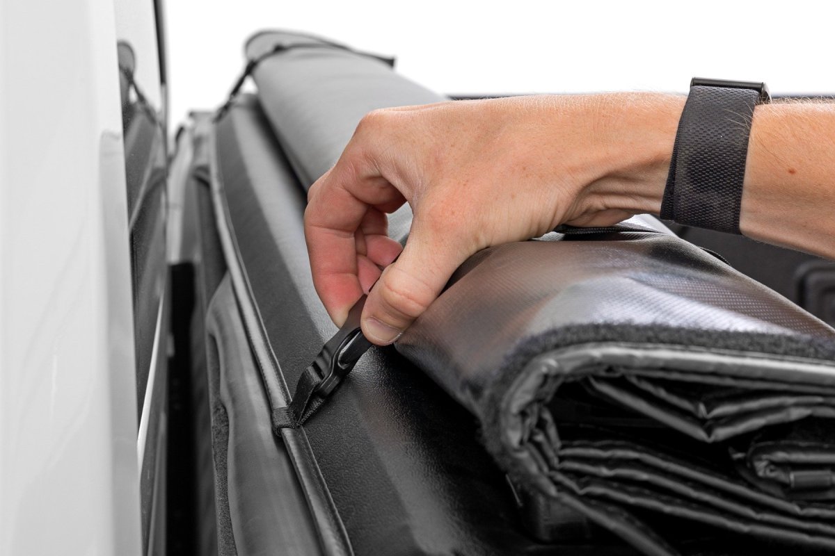 Chevrolet Silverado 1500 Soft Roll Up Bed Cover - Rough Country - Rough Country, Marine Grade Vinyl - Matte Black - '19-'24