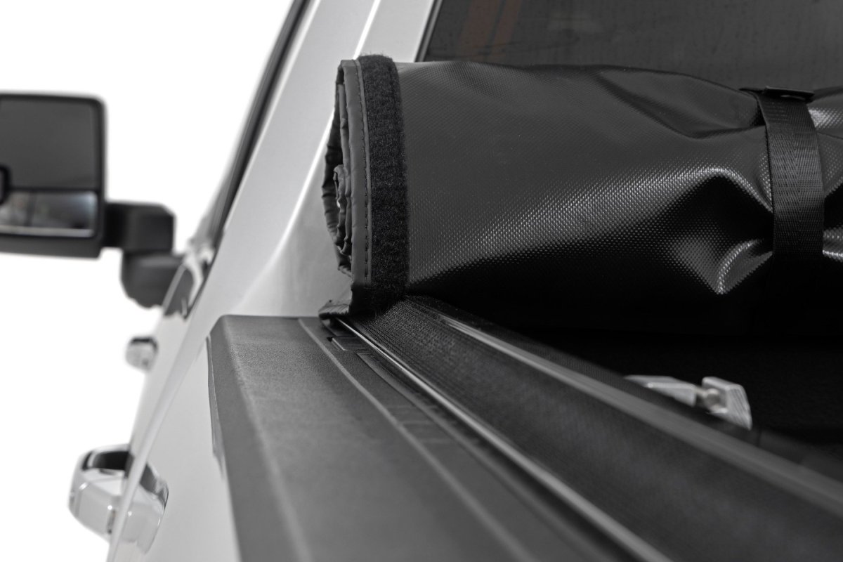 GMC Sierra 3500 HD Soft Roll Up Bed Cover - Rough Country - Matte Black - '20-'24