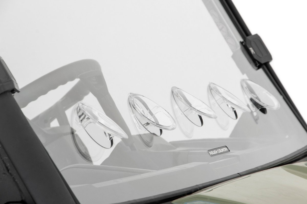 Built with innovation and precision, the Rough Country windshield equips your Can-Am Defender with the perfect balance of protection and customizable comfort. It protects against off-road hazards like rocks, branches, and debris, with the capability to manage air circulation through its 5 adjustable vents. These vents can be closed, opened, or set halfway, allowing perfect control over airflow based on your needs. This flexibility ensures your ride remains comfortable regardless of dust or heat, as the 360-degree rotating vents provide adjustable comfort and superior adaptability on every journey.