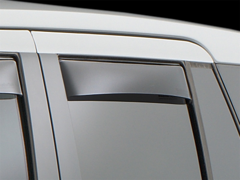 Land Rover Range Rover Sport Side Window Deflectors - Rear - WeatherTech - In-Channel, Low Profile - Dark Smoke - `06-`13. These WeatherTech rear side window deflectors provide controlled fresh-air ventilation with an OEM-style fit for 2006–2013 Range Rover Sport models.