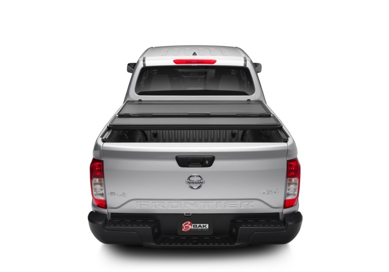 The BAKFlip MX4 isn't only durable, it's also sleek and stylish. Unlike competitors, the BAKFlip MX4 sits flush with your pickup's bed rails, practically disappearing into your truck's profile. And with a sleek, textured matte black finish across all surfaces, the MX4 looks great whether open or closed.. The best-selling truck bed cover in the world just got better.Introducing the new and improved RealTruck BAKFlip(R) MX4 (GEN 3)—an evolution of RealTruck's most popular tonneau cover. This next-generation upgrade builds on everything truck owners already love about MX4, now enhanced with improved functionality, greater durability, and elevated security.The new and improved BAKFlip MX4 is constructed primarily from alloy materials, including heavy-duty aluminum top panels and side rails. Reinforced with high-density polymer cores, each panel delivers a 22 percent increase in overall strength compared to the original model.Security is also enhanced. In addition to BAK's patented auto-latching system, which automatically secures the cover when closed, the BAKFlip MX4 (GEN 3) features re-engineered lock components for improved resistance to forced entry compared to the GEN 2. No matter the cargo you're transporting, you can rest assured knowing your gear's protected.When the weather turns, the BAKFlip MX4 (GEN 3) holds strong. Revised EPDM rubber perimeter seals and tight-fit clamps provide our best seal yet, preventing seepage between the bed cover and bed rails. At the rear of the cover, a 13 percent longer dual-action tailgate seal provides weather protection for the tailgate. This innovative design also improves operation, maintaining factory tailgate functionality regardless of the cover's position.The BAKFlip MX4 isn't only durable, it's also sleek and stylish. Unlike competitors, the BAKFlip MX4 sits flush with your pickup's bed rails, practically disappearing into your truck's profile. And with a sleek, textured matte black finish across all surfaces, the MX4 looks great whether open or closed.. BAKFlip MX4 (GEN 3) Hard Folding Truck Bed Cover - Matte Finish - 2022-2026 Nissan Frontier 5' Bed with or without Utili-Track System. BAKFlip MX4 (GEN 3) Hard Folding Truck Bed Cover-Matte Finish-2022-2025 Nissan Frontier 5ft. Bed with or without Utili-Track System. High-density polymer-reinforced aluminum top panels are 22 percent stronger than the original MX4. Redesigned Rail And Clamp Design Combine For An Easier-Than-Ever- No-Drill Installation. Re-engineered automatic latching panels offer improved security over the GEN 2 design. Heavy-Duty Aluminum Panel And Rail Construction Supports More Than 400Lbs. Of Weight. Re-engineered perimeter seals and tight-fit clamps for superior weather protection. Premium rubber bumpers protect the cab when folded into the upright position. Weather-Resistant Rubber Seals And Plastic End Caps For Superior Protection. Refined Latch System Reduces Cable Fatigue For Smooth Effortless Operation. BAKFlip MX4 (GEN 3) 22-25 Frontier 5ft. w/or w/out Utili-Track System. BAKFlip MX4 (GEN 3) 22-26 Frontier 5' w/ or w/out Utili-Track System. Extra-long, dual-action tailgate seal available on most applications. Premium Rubber Bumpers Protect The Cab From Contact With The Cover. 12 percent quicker installation with all-new click-in design. Extra-Strong Prop Rods Firmly Secure Cover In Open Position. Cover Folds Toward The Cab For Easy 100 Percent Bed Access. BAK 2022 Nissan Frontier 5ft Bed BAKFlip MX4 Matte Finish. Comprehensive 3rd brake light visibility in all positions. Matte-Black Exterior Finish Adds A Subtle Stylish Accent. Striking textured black finish across all components. Precision-engineered aluminum side rails and frame. Folds against the cab for 100 percent bed access. Re-engineered prop rod clips for a secure hold. Integrated Drain Tubes Ensure Cargo Stays Dry. 400 lbs. weight capacity (evenly distributed). BAKFlip MX4 (GEN 3) Tonneau Cover. Integrated water drainage system. Simple one-person installation. Limited Five-Year Warranty. BFMX4 22-25 Frntr 5ft.. Assembled in Missouri. BFMX4 22-26 Frntr 5'. BFMX4 22-25 Frntr 5f. 5-year warranty. Tonneau Cover