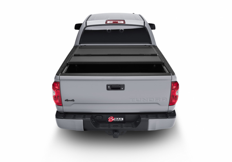 The BAKFlip MX4 isn't only durable, it's also sleek and stylish. Unlike competitors, the BAKFlip MX4 sits flush with your pickup's bed rails, practically disappearing into your truck's profile. And with a sleek, textured matte black finish across all surfaces, the MX4 looks great whether open or closed.. The best-selling truck bed cover in the world just got better.Introducing the new and improved RealTruck BAKFlip(R) MX4 (GEN 3)—an evolution of RealTruck's most popular tonneau cover. This next-generation upgrade builds on everything truck owners already love about MX4, now enhanced with improved functionality, greater durability, and elevated security.The new and improved BAKFlip MX4 is constructed primarily from alloy materials, including heavy-duty aluminum top panels and side rails. Reinforced with high-density polymer cores, each panel delivers a 22 percent increase in overall strength compared to the original model.Security is also enhanced. In addition to BAK's patented auto-latching system, which automatically secures the cover when closed, the BAKFlip MX4 (GEN 3) features re-engineered lock components for improved resistance to forced entry compared to the GEN 2. No matter the cargo you're transporting, you can rest assured knowing your gear's protected.When the weather turns, the BAKFlip MX4 (GEN 3) holds strong. Revised EPDM rubber perimeter seals and tight-fit clamps provide our best seal yet, preventing seepage between the bed cover and bed rails. At the rear of the cover, a 13 percent longer dual-action tailgate seal provides weather protection for the tailgate. This innovative design also improves operation, maintaining factory tailgate functionality regardless of the cover's position.The BAKFlip MX4 isn't only durable, it's also sleek and stylish. Unlike competitors, the BAKFlip MX4 sits flush with your pickup's bed rails, practically disappearing into your truck's profile. And with a sleek, textured matte black finish across all surfaces, the MX4 looks great whether open or closed.. BAKFlip MX4 (GEN 3) Hard Folding Truck Bed Cover - Matte Finish - 2007-2021 Toyota Tundra 5' 6" Bed with Deck Rail System without Trail Special Edition Storage Boxes. BAKFlip MX4 (GEN 3) Hard Folding Truck Bed Cover-Matte Finish-2007-2021 Toyota Tundra 5ft. 6in. Bed with Deck Rail System without Trail Special Edition Storage Boxes. High-density polymer-reinforced aluminum top panels are 22 percent stronger than the original MX4. Redesigned Rail And Clamp Design Combine For An Easier-Than-Ever- No-Drill Installation. Re-engineered automatic latching panels offer improved security over the GEN 2 design. Heavy-Duty Aluminum Panel And Rail Construction Supports More Than 400Lbs. Of Weight. Re-engineered perimeter seals and tight-fit clamps for superior weather protection. BAK 07-20 Toyota Tundra (w/ OE Track System) 5ft 6in Bed BAKFlip MX4 Matte Finish. BAKFlip MX4 (GEN 3)07-21 Tundra 5'6" w/ Deck Rail Sys w/o Trail Spcl Ed Strg Bxs. BAKFlip MX4 (GEN 3)07-21 Tundra 5ft.6in. w/Deck Rail Sys w/o Trail Spcl Ed Strg. Premium rubber bumpers protect the cab when folded into the upright position. Weather-Resistant Rubber Seals And Plastic End Caps For Superior Protection. Refined Latch System Reduces Cable Fatigue For Smooth Effortless Operation. Extra-long, dual-action tailgate seal available on most applications. Premium Rubber Bumpers Protect The Cab From Contact With The Cover. 12 percent quicker installation with all-new click-in design. Extra-Strong Prop Rods Firmly Secure Cover In Open Position. Cover Folds Toward The Cab For Easy 100 Percent Bed Access. Comprehensive 3rd brake light visibility in all positions. Matte-Black Exterior Finish Adds A Subtle Stylish Accent. Striking textured black finish across all components. Precision-engineered aluminum side rails and frame. Folds against the cab for 100 percent bed access. Re-engineered prop rod clips for a secure hold. Integrated Drain Tubes Ensure Cargo Stays Dry. 400 lbs. weight capacity (evenly distributed). BAKFlip MX4 (GEN 3) Tonneau Cover. Integrated water drainage system. Simple one-person installation. Limited Five-Year Warranty. BFMX4 07-21 Tun 5ft.6. Assembled in Missouri. BFMX4 07-21 Tun 5ft.. BFMX4 07-21 Tun 5'6. 5-year warranty. Tonneau Cover