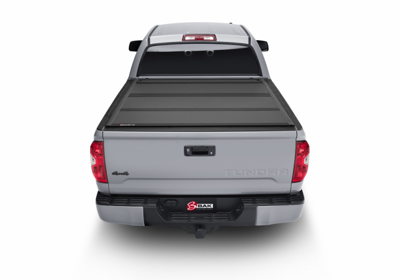 The BAKFlip MX4 isn't only durable, it's also sleek and stylish. Unlike competitors, the BAKFlip MX4 sits flush with your pickup's bed rails, practically disappearing into your truck's profile. And with a sleek, textured matte black finish across all surfaces, the MX4 looks great whether open or closed.. The best-selling truck bed cover in the world just got better.Introducing the new and improved RealTruck BAKFlip(R) MX4 (GEN 3)—an evolution of RealTruck's most popular tonneau cover. This next-generation upgrade builds on everything truck owners already love about MX4, now enhanced with improved functionality, greater durability, and elevated security.The new and improved BAKFlip MX4 is constructed primarily from alloy materials, including heavy-duty aluminum top panels and side rails. Reinforced with high-density polymer cores, each panel delivers a 22 percent increase in overall strength compared to the original model.Security is also enhanced. In addition to BAK's patented auto-latching system, which automatically secures the cover when closed, the BAKFlip MX4 (GEN 3) features re-engineered lock components for improved resistance to forced entry compared to the GEN 2. No matter the cargo you're transporting, you can rest assured knowing your gear's protected.When the weather turns, the BAKFlip MX4 (GEN 3) holds strong. Revised EPDM rubber perimeter seals and tight-fit clamps provide our best seal yet, preventing seepage between the bed cover and bed rails. At the rear of the cover, a 13 percent longer dual-action tailgate seal provides weather protection for the tailgate. This innovative design also improves operation, maintaining factory tailgate functionality regardless of the cover's position.The BAKFlip MX4 isn't only durable, it's also sleek and stylish. Unlike competitors, the BAKFlip MX4 sits flush with your pickup's bed rails, practically disappearing into your truck's profile. And with a sleek, textured matte black finish across all surfaces, the MX4 looks great whether open or closed.. BAKFlip MX4 (GEN 3) Hard Folding Truck Bed Cover - Matte Finish - 2007-2021 Toyota Tundra 5' 6" Bed without Deck Rail System without Trail Special Edition Storage Boxes. BAKFlip MX4 (GEN 3) Hard Folding Truck Bed Cover-Matte Finish-2007-2021 Toyota Tundra 5ft. 6in. Bed without Deck Rail System without Trail Special Edition Storage Boxes. High-density polymer-reinforced aluminum top panels are 22 percent stronger than the original MX4. Redesigned Rail And Clamp Design Combine For An Easier-Than-Ever- No-Drill Installation. Re-engineered automatic latching panels offer improved security over the GEN 2 design. Heavy-Duty Aluminum Panel And Rail Construction Supports More Than 400Lbs. Of Weight. Re-engineered perimeter seals and tight-fit clamps for superior weather protection. BAKFlip MX4 (GEN 3) 07-21 Tundra 5'6" w/oDeck Rail Sys w/oTrail Spcl Ed Strg Bxs. BAKFlip MX4 (GEN 3) 07-21 Tundra 5ft.6in. w/oDeck Rail Sys w/oTrail Spcl Ed Strg. Premium rubber bumpers protect the cab when folded into the upright position. Weather-Resistant Rubber Seals And Plastic End Caps For Superior Protection. Refined Latch System Reduces Cable Fatigue For Smooth Effortless Operation. Extra-long, dual-action tailgate seal available on most applications. Premium Rubber Bumpers Protect The Cab From Contact With The Cover. BAK 07-20 Toyota Tundra 5ft 6in Bed BAKFlip MX4 Matte Finish. 12 percent quicker installation with all-new click-in design. Extra-Strong Prop Rods Firmly Secure Cover In Open Position. Cover Folds Toward The Cab For Easy 100 Percent Bed Access. Comprehensive 3rd brake light visibility in all positions. Matte-Black Exterior Finish Adds A Subtle Stylish Accent. Striking textured black finish across all components. Precision-engineered aluminum side rails and frame. Folds against the cab for 100 percent bed access. Re-engineered prop rod clips for a secure hold. Integrated Drain Tubes Ensure Cargo Stays Dry. 400 lbs. weight capacity (evenly distributed). BAKFlip MX4 (GEN 3) Tonneau Cover. Integrated water drainage system. Simple one-person installation. Limited Five-Year Warranty. BFMX4 07-21 Tun 5ft.6. Assembled in Missouri. BFMX4 07-21 Tun 5ft.. BFMX4 07-21 Tun 5'6. 5-year warranty. Tonneau Cover