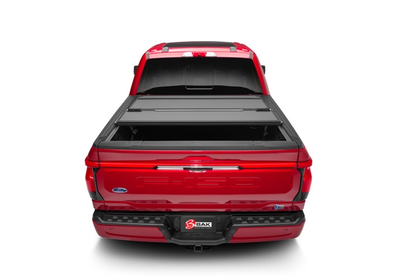 The BAKFlip MX4 isn't only durable, it's also sleek and stylish. Unlike competitors, the BAKFlip MX4 sits flush with your pickup's bed rails, practically disappearing into your truck's profile. And with a sleek, textured matte black finish across all surfaces, the MX4 looks great whether open or closed.. The best-selling truck bed cover in the world just got better.Introducing the new and improved RealTruck BAKFlip(R) MX4 (GEN 3)—an evolution of RealTruck's most popular tonneau cover. This next-generation upgrade builds on everything truck owners already love about MX4, now enhanced with improved functionality, greater durability, and elevated security.The new and improved BAKFlip MX4 is constructed primarily from alloy materials, including heavy-duty aluminum top panels and side rails. Reinforced with high-density polymer cores, each panel delivers a 22 percent increase in overall strength compared to the original model.Security is also enhanced. In addition to BAK's patented auto-latching system, which automatically secures the cover when closed, the BAKFlip MX4 (GEN 3) features re-engineered lock components for improved resistance to forced entry compared to the GEN 2. No matter the cargo you're transporting, you can rest assured knowing your gear's protected.When the weather turns, the BAKFlip MX4 (GEN 3) holds strong. Revised EPDM rubber perimeter seals and tight-fit clamps provide our best seal yet, preventing seepage between the bed cover and bed rails. At the rear of the cover, a 13 percent longer dual-action tailgate seal provides weather protection for the tailgate. This innovative design also improves operation, maintaining factory tailgate functionality regardless of the cover's position.The BAKFlip MX4 isn't only durable, it's also sleek and stylish. Unlike competitors, the BAKFlip MX4 sits flush with your pickup's bed rails, practically disappearing into your truck's profile. And with a sleek, textured matte black finish across all surfaces, the MX4 looks great whether open or closed.. BAKFlip MX4 (GEN 3) Hard Folding Truck Bed Cover - Matte Finish - 2021-2025 Ford F-150 5' 7" Bed (Includes Lightning). BAKFlip MX4 (GEN 3) Hard Folding Truck Bed Cover-Matte Finish-2021-2025 Ford F-150 5ft. 7in. Bed (Includes Lightning). High-density polymer-reinforced aluminum top panels are 22 percent stronger than the original MX4. Redesigned Rail And Clamp Design Combine For An Easier-Than-Ever- No-Drill Installation. BAK 21-22 Ford F-150 (Incl. 2022 Lightning) BAKFlip MX4 5.7ft Bed Cover - Matte Finish. Re-engineered automatic latching panels offer improved security over the GEN 2 design. Heavy-Duty Aluminum Panel And Rail Construction Supports More Than 400Lbs. Of Weight. Re-engineered perimeter seals and tight-fit clamps for superior weather protection. Premium rubber bumpers protect the cab when folded into the upright position. Weather-Resistant Rubber Seals And Plastic End Caps For Superior Protection. Refined Latch System Reduces Cable Fatigue For Smooth Effortless Operation. Extra-long, dual-action tailgate seal available on most applications. Premium Rubber Bumpers Protect The Cab From Contact With The Cover. BAKFlip MX4 (GEN 3) 21-25 F150 5ft.7in. (Includes Lightning). 12 percent quicker installation with all-new click-in design. Extra-Strong Prop Rods Firmly Secure Cover In Open Position. Cover Folds Toward The Cab For Easy 100 Percent Bed Access. Comprehensive 3rd brake light visibility in all positions. BAKFlip MX4 (GEN 3) 21-25 F150 5'7" (Includes Lightning). Matte-Black Exterior Finish Adds A Subtle Stylish Accent. Striking textured black finish across all components. Precision-engineered aluminum side rails and frame. Folds against the cab for 100 percent bed access. Re-engineered prop rod clips for a secure hold. Integrated Drain Tubes Ensure Cargo Stays Dry. 400 lbs. weight capacity (evenly distributed). BAKFlip MX4 (GEN 3) Tonneau Cover. Integrated water drainage system. Simple one-person installation. Limited Five-Year Warranty. BFMX4 21-25 F150 5ft.7. Assembled in Missouri. BFMX4 21-25 F150 5'7. BFMX4 21-25 F150 5ft. 5-year warranty. Tonneau Cover