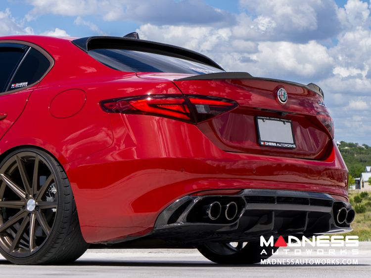 Upgrade the exterior of your Alfa Romeo Giulia with this custom made Carbon Fiber Diffuser from Feroce Carbon.