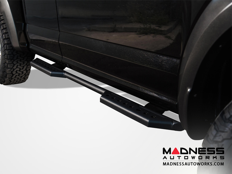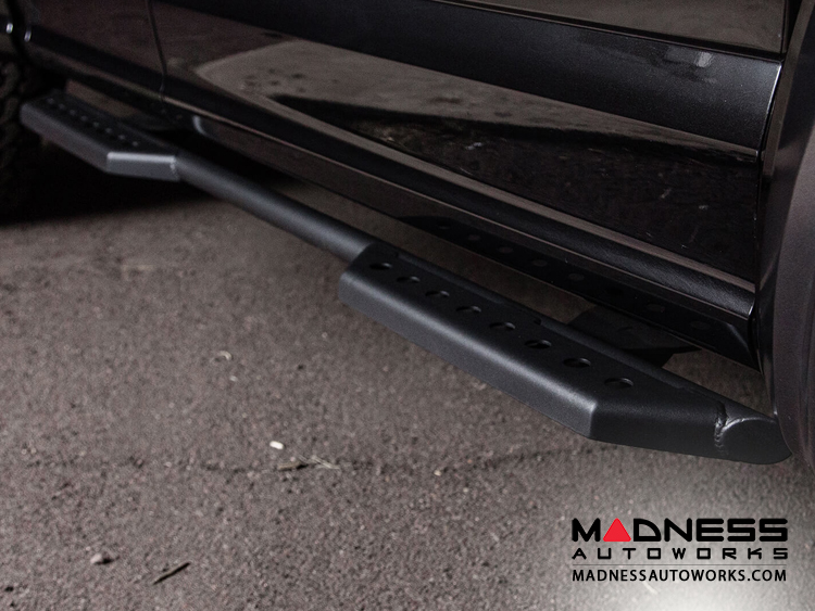 These Addictive Desert Design Stealth side steps add protection to your truck without compromising weight concerns. These steps are light weight and feature a dimple die tread at each step location. The best part of all is that these use all factory mounting locations and hardware meaning a perfect fit.