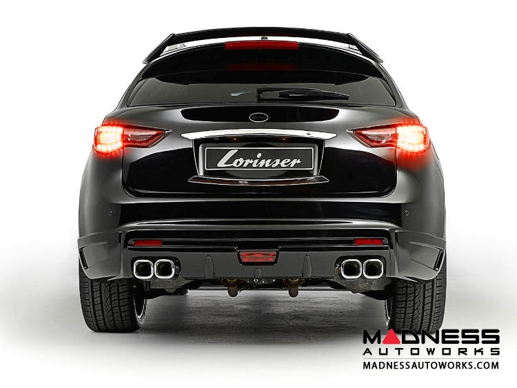 With its precise fit and finish, this genuine Lorinser product is imported from Germany, ensuring high quality and superior craftsmanship. The molded part is expertly designed to seamlessly integrate with your Infiniti, giving it a sporty and aggressive look.