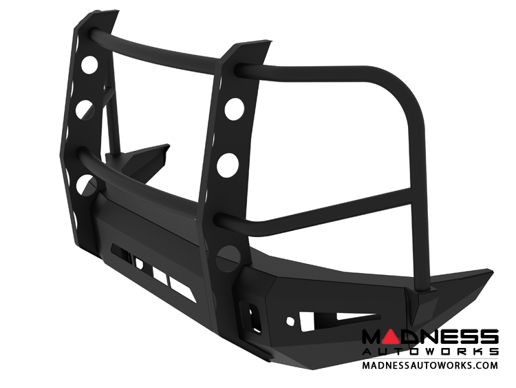 A Grille Guard option is now available on select Vehicle Makes/Models on our Magnum Front Bumpers. There have been many different versions of Grille Guards, everything from a Ranch, Frontier, Lineman, Journeyman, and even the old Cow pushers style bumpers to have been around for over 3 decades, and they have never evolved until NOW!! The in-house engineering continues our tradition of Innovation by creating a Grille Guard first of its kind. The NEW Grille Guard Series of bumpers. With the price of trucks now in the range from 50-90k, trucks are just not used for work anymore. Today's trucks are upgraded with all the luxuries and are some of the finest automobiles produced. Manufacturer wanted to create a Grille Guard that represents that statement.