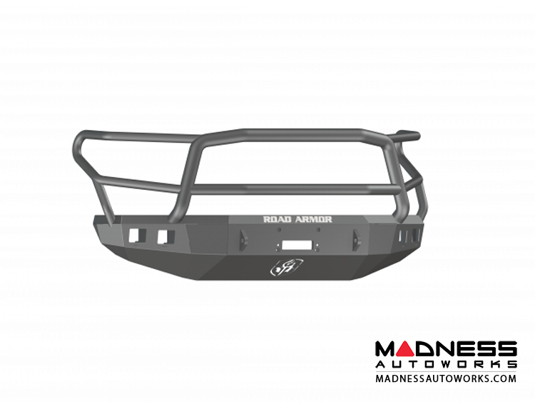 Road Armor Stealth Full Replacement Winch Bumpers are rugged, and loaded with added utility. The Original Faceted Stealth Series Steel Bumper in Raw Unfinished Steel was the pioneer of the aftermarket bumper segment. Specifically designed to follow, compliment, and accentuate the body lines of your vehicle, this masterpiece of metal houses a WARN M12000, Smittybilt XRC winch or similar and has recessed light ports for (4x) Rigid Dually/D2 or Quake LED QSE550 and (3x) Light Tabs on Lonestar Guard*.