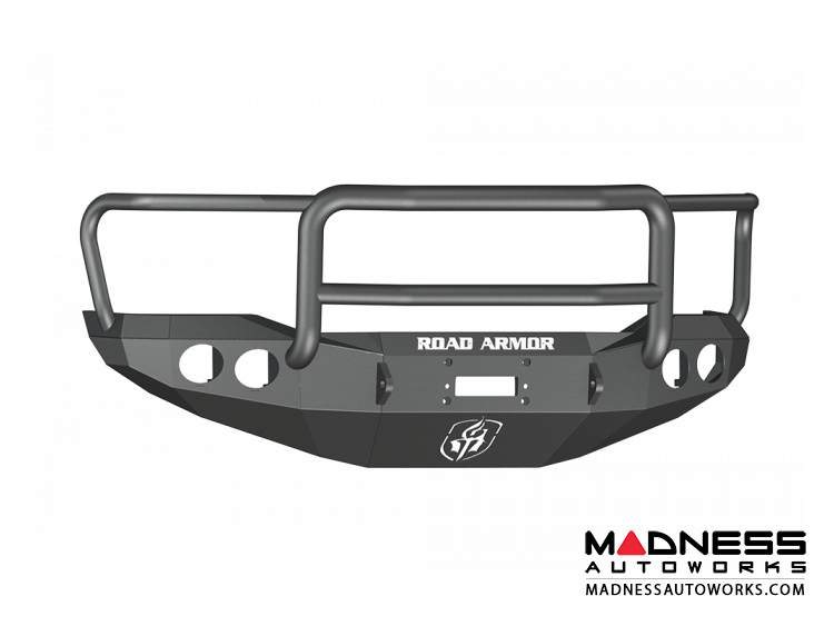 Road Armor Stealth Full Replacement Winch Bumpers are rugged, and loaded with added utility. The Original Faceted Stealth Series Steel Bumper in Raw Unfinished Steel was the pioneer of the aftermarket bumper segment. Specifically designed to follow, compliment, and accentuate the body lines of your vehicle, this masterpiece of metal houses a WARN M8000 or 9.5xp winch or similar and has recessed light ports for (4x) 4-inch diameter : PIAA 510 or Quake LED QFR199 and (3x) Light Tabs on Lonestar Guard*.