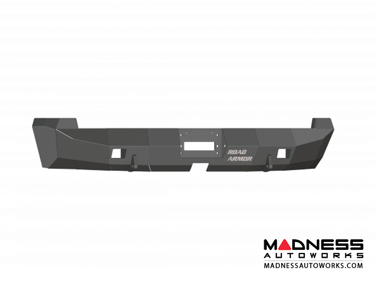 Stealth Series Full Width Raw Rear Winch HD Bumper (99040Z) by Road Armor®. With Square Light Mounts. Recessed light ports for (2x) Rigid SRM Backup Lights or QuakeLED QQU451. Boost your off-road machine's off-road protection to tackle the rugged trails and gnarly terrain with extra piece of mind by setting it with this Off-Road bumper.