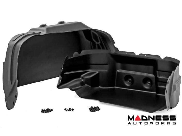 These fender liners have been thoughtfully designed to bridge the gap between the truck's body and frame, a space that becomes more apparent after you've lifted your vehicle. Crafted from high-density polyethylene, these liners promise not only durability but also a striking enhancement of your truck's rear appearance with their clean, all-black finish.