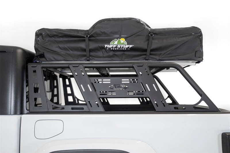 The installation process is designed with convenience in mind—taking full advantage of the Jeep Gladiator's in bed rail system, there's no need for drilling or cutting, preserving the integrity of your vehicle while allowing for effortless installation. As with all of Addictive Desert Designs' products, the overland rack is proudly made in America, promising excellent quality and craftsmanship.