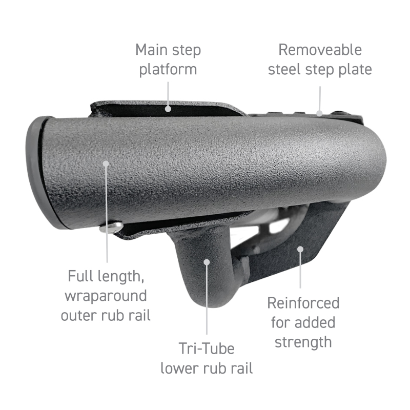 - Easy installation utilizing OEM step locations; no drilling or cutting required