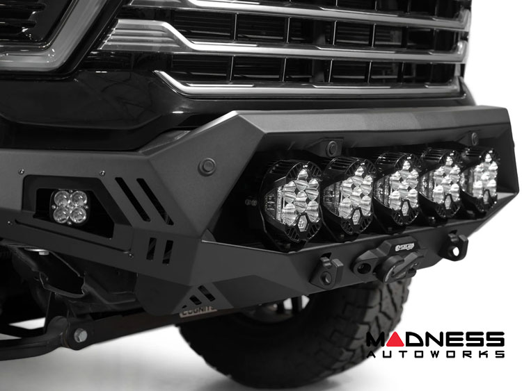Transform your truck with the Chevrolet Silverado 2500/3500 Front Bumper - Bomber Series, the ultimate blend of rugged utility and eye-catching style for your off-road adventures.
