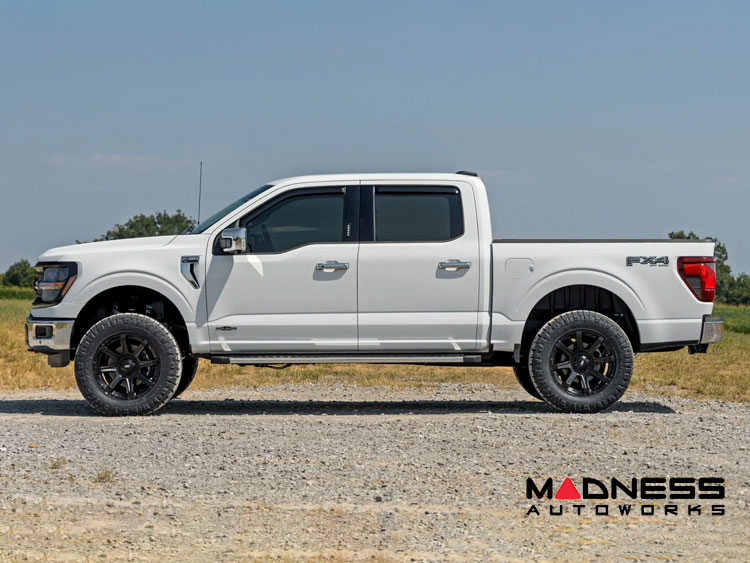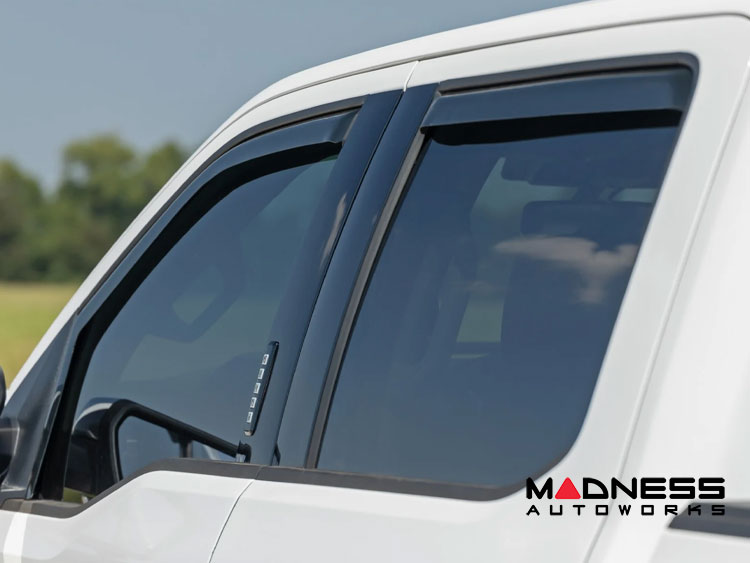 Upgrade your driving experience with the Ford F-150 Side Window Air Deflectors from Rough Country.