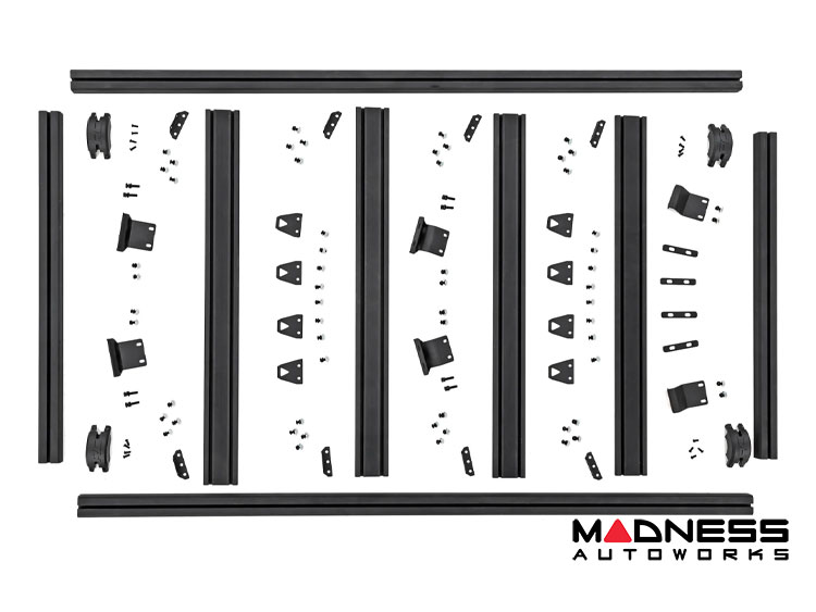 With its integrated slotted T-rail system, you have numerous mounting options for lighting, awnings, jacks, recovery boards, or storage boxes, allowing you to customize your setup for any adventure. Plus, the adaptable cross bar system enhances this product's versatility, as they can be flipped or repositioned to form a basket-style platform or adapted to fit specific equipment requirements. This ensures that you can handle any cargo or plan an overland expedition with confidence.