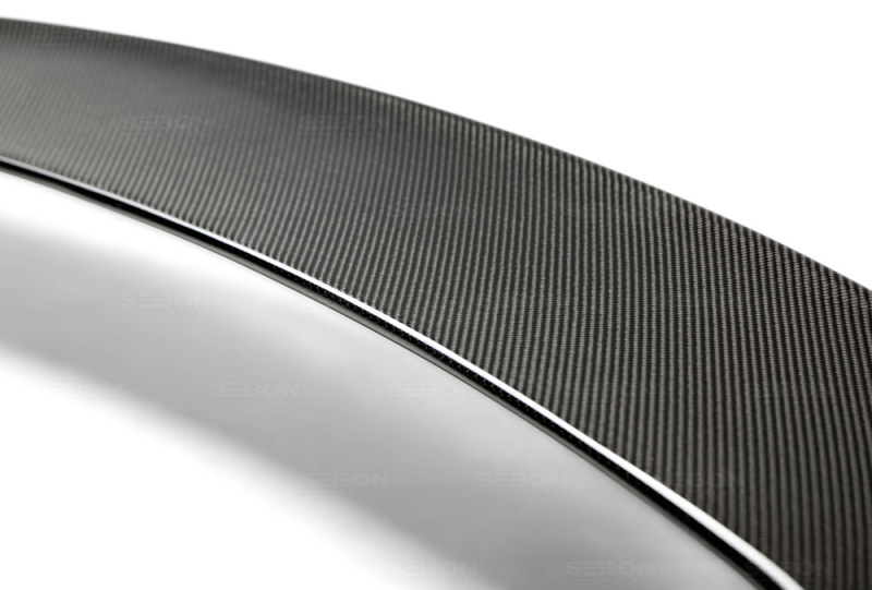 Constructed with premium-grade carbon fiber, this Seibon rear roof spoiler offers improved aerodynamics by reducing wind drag over your vehicle. The use of a professional 3K 2x2 twill weave carbon fiber fabric ensures that the spoiler is lightweight yet incredibly strong, adding to your car's aesthetic without burdening it with extra weight. Meticulously hand-crafted, the spoiler features a consistent weave pattern and is coated with a glossy clear finish that is resistant to chipping and flaking, ensuring durability in varying weather conditions and long-lasting visual appeal. Designed to be show-ready with no painting required, this spoiler adds a professional and sleek look to your vehicle right out of the box.