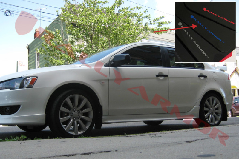 Mitsubishi Lancer Mud Flaps - Rally Armor - UR Blue Logo - Black - `07-`17