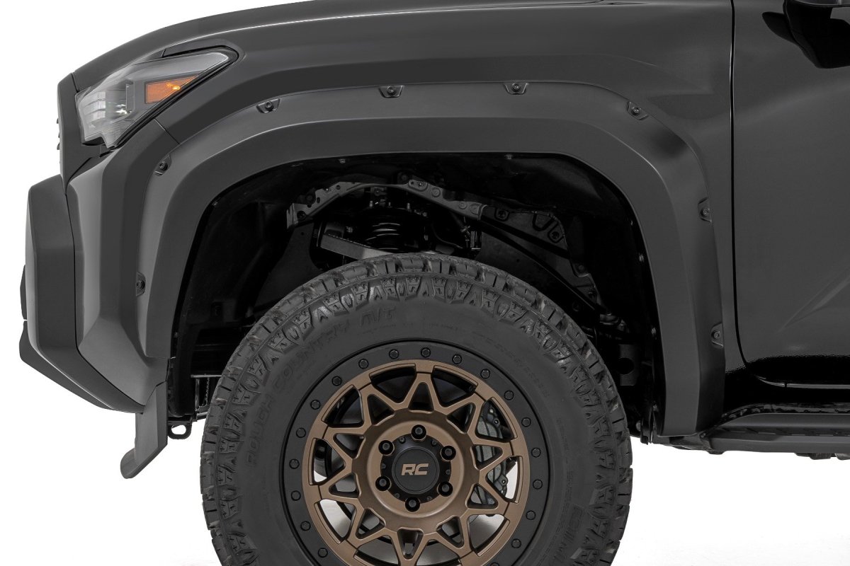 Toyota 4Runner Fender Flares - Rough Country - Pocket - Gloss Black - 2025+ are designed to enhance the look and protection of your 4Runner. These flares provide a bold, rugged appearance while ensuring maximum coverage against road debris, rocks, and mud.