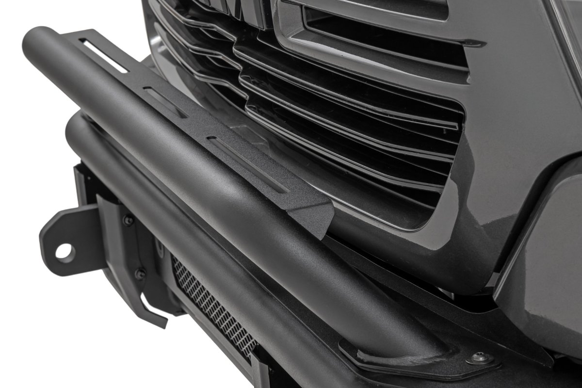 - Bolt-On Stinger Bar with Light Mount: Adds aggressive front-end protection while doubling as a mount for an LED light bar.