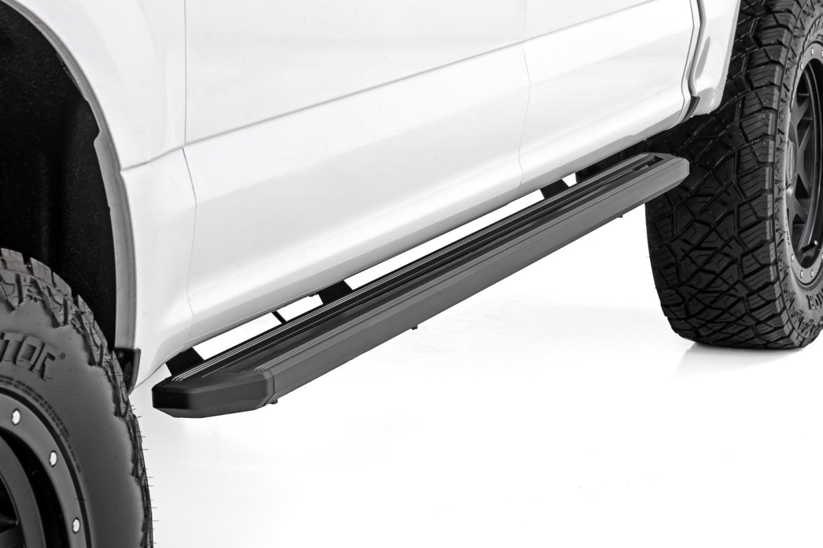 The Ford F-350 Super Duty Running Boards by Rough Country are the epitome of innovation and durability for your truck. These cutting-edge running boards, specifically designed for the 2017-2023 Ford F-350 models, combine Bluetooth-controlled convenience, customizable LED lighting, and a robust premium aluminum construction into one contemporary package. Whether you're looking for enhanced truck accessibility, added protection, or a striking new look, these running boards deliver the ideal blend of functionality and style at your fingertips.