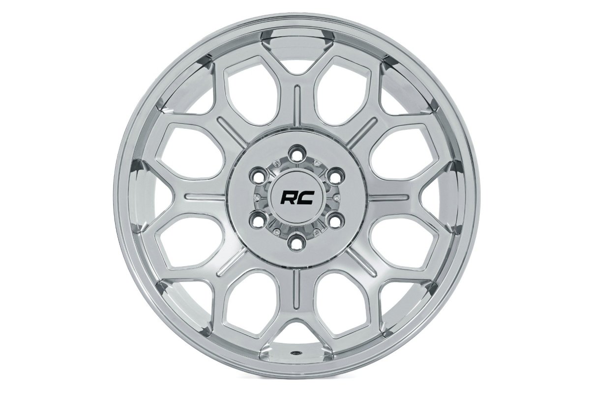 The Rough Country - 77 Series, One-Piece, 20x10, 6x135, -25mm Offset - Chrome Wheel is an excellent choice for those who desire a blend of robust performance and eye-catching aesthetics. Designed with meticulous attention to detail, these wheels ensure both functionality and style, perfect for any driving adventure, whether on city streets or rugged trails.