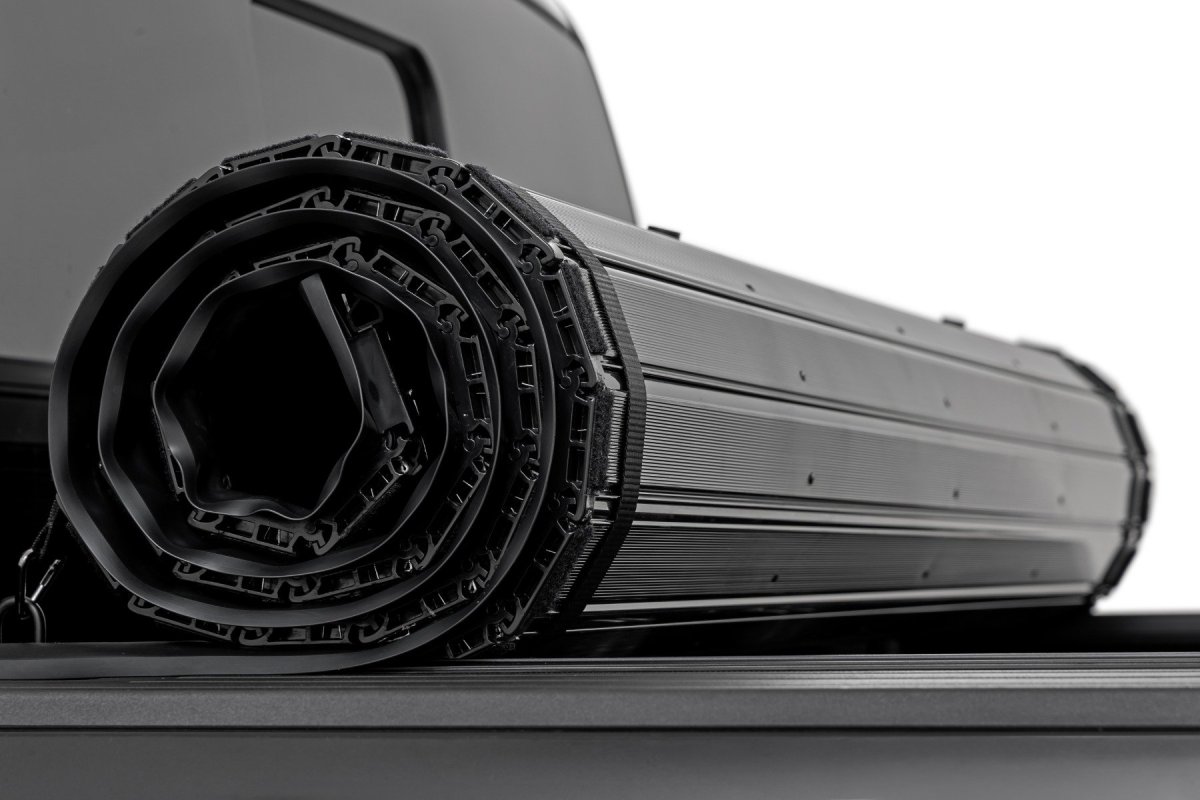 The Rough Country Hard Roll Up Cover provides ultimate security and convenience for your truck bed. Featuring a sleek, matte black finish complemented by durable aluminum slats, this cover not only guards your cargo but also brings a distinctive look to your truck. The aluminum construction is resistant to corrosion, ensuring longevity, while the black powder-coated frame supports up to 600lbs of evenly distributed weight. Gain quick and easy access to your gear with a roll-up design that unlocks instantly via a simple cable pull, and enjoy peace of mind with an innovative auto-latching system that securely locks the cover in place.