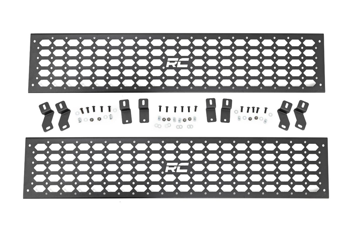 Crafted from strong 14GA steel, this panel seamlessly integrates with your bed rack setup, promising both a perfect fit and effortless installation. The carefully laser-cut and welded design ensures a high level of precision, while the durable powder coat finish provides an additional layer of protection against the elements, boosting longevity. With its extensive range of accessory attachment options, the Rough Country Molle Panel enables you to customize your storage space to meet your specific needs, whether it be for work, adventure, or everyday use.