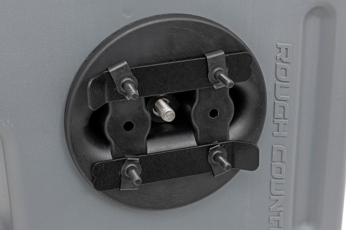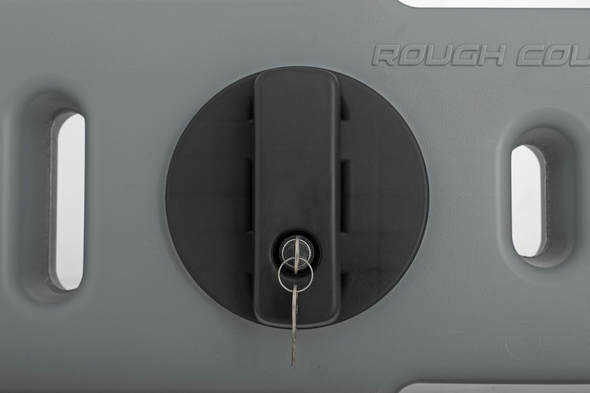 The Fluid Container - Rough Country - With Locker - Gray is an ideal storage solution designed for secure, hassle-free transportation of essential fluids. It's crafted with durability and user convenience at its core, making it perfectly suited for both outdoor enthusiasts and professionals needing reliable fluid storage during off-road excursions.