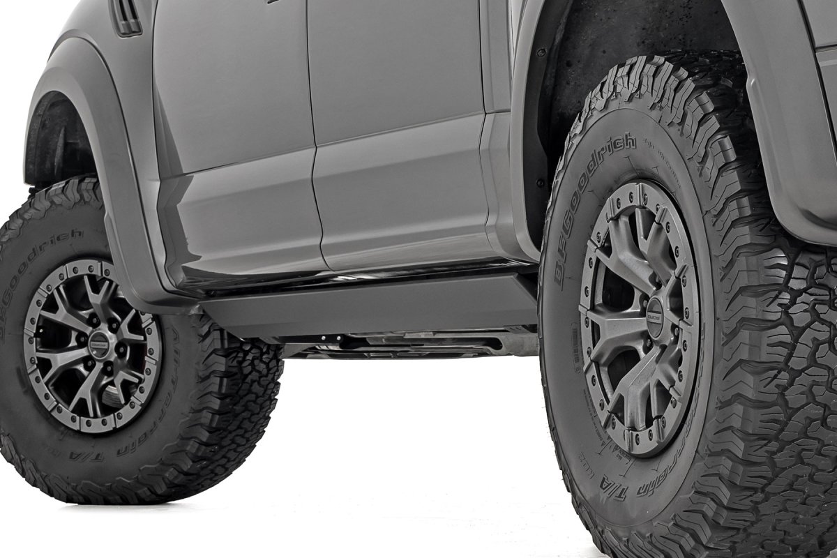 Introducing the Ford F-350 Super Duty Power Running Boards by Rough Country, specifically designed for the 2017-2023 models. These high-quality running boards are the perfect blend of functionality and style, offering a seamless and automatic entry experience for your vehicle.
