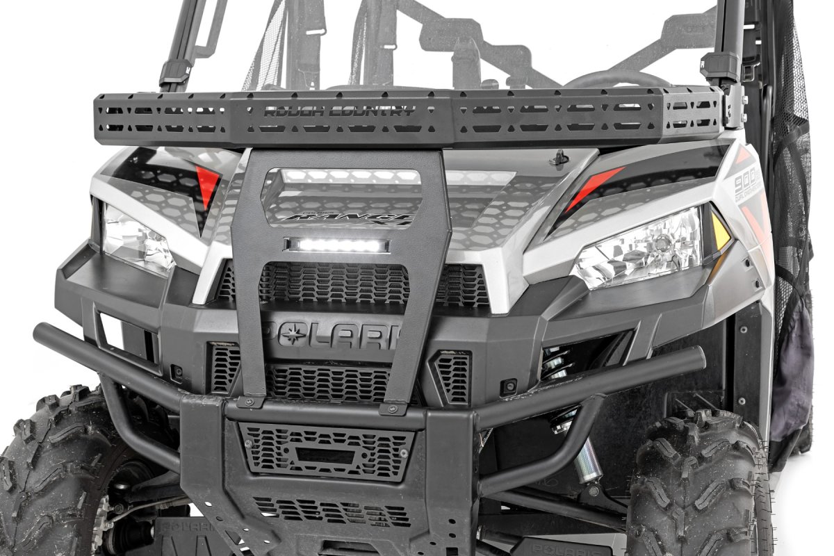 The Polaris Ranger 900 XP Bronze Mist LE Front Cargo Rack by Rough Country is the ultimate addition for adventurers in need of increased storage capacity. This versatile 6" Slimline black cargo rack, specifically designed for the 2013 model, offers ample space without compromising your cab or bed space.