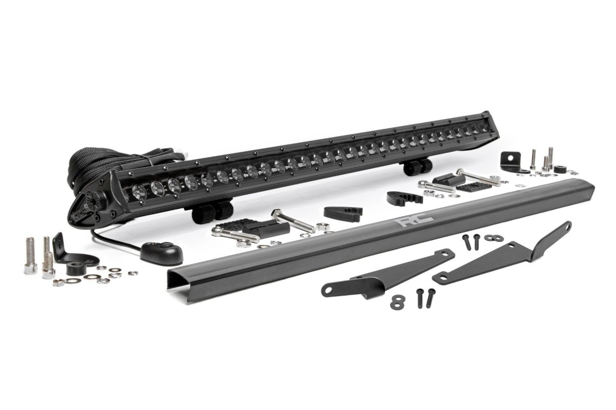 Introducing the Polaris RZR Pro R 4 LED Light Kit - Front - Rough Country - 30-Inch LED - 2022. This cutting-edge LED light kit enhances your off-road adventures with superior illumination and rugged durability, making it the perfect addition to your Polaris RZR Pro R 2022 model.