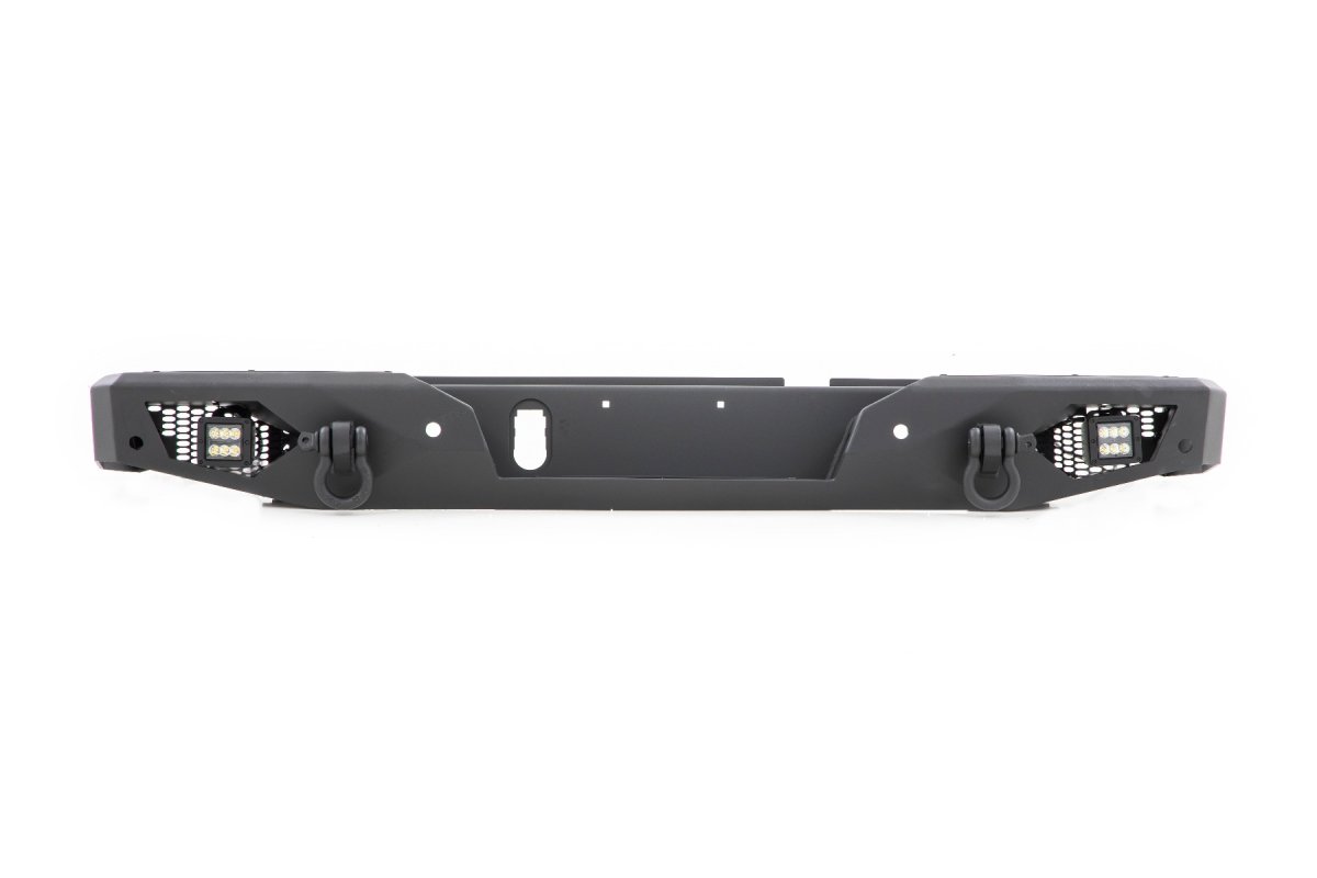 Jeep Gladiator Rear Bumper - Rough Country - Heavy-Duty with LED Cubes - Textured Black - '20-'25 is a top-of-the-line enhancement for your Jeep. Offering supreme protection and increased tire clearance, this rear bumper is ideal for both off-road adventures and urban driving.