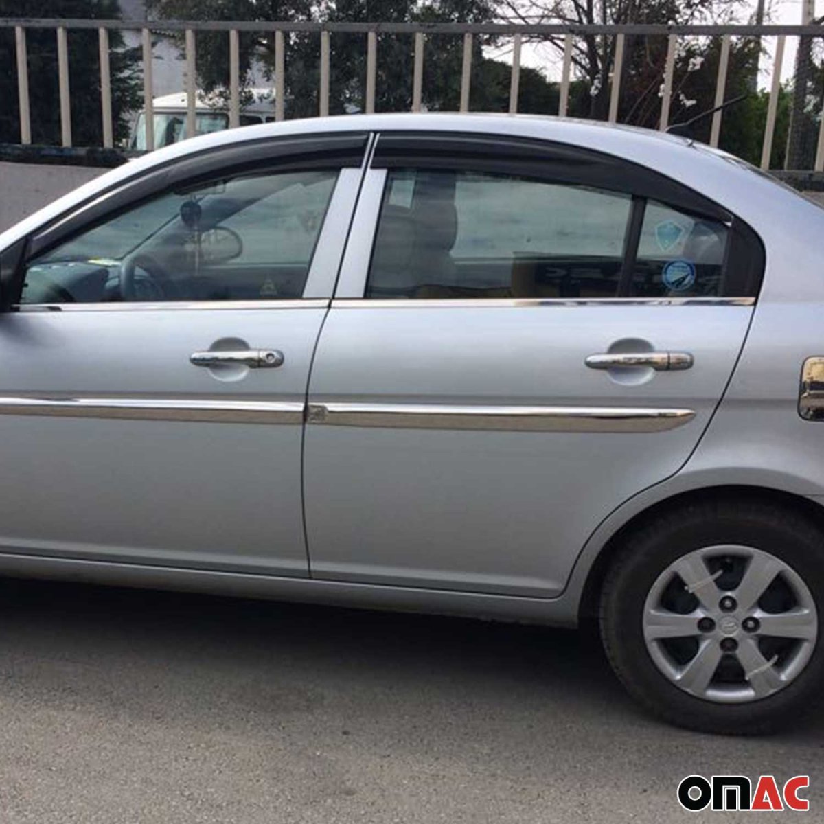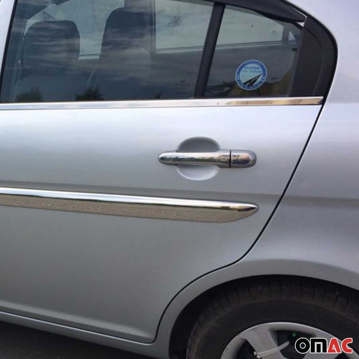 The Hyundai Accent Door Handle Cover - 4 Door by Omac USA, crafted with precision using H1 stainless steel, offers a gloss silver finish that enhances your car while adding a layer of protection. Specifically designed for the Hyundai Accent models from 2005 to 2011, this cover ensures a tailored fit that complements the sleek profile of your vehicle.